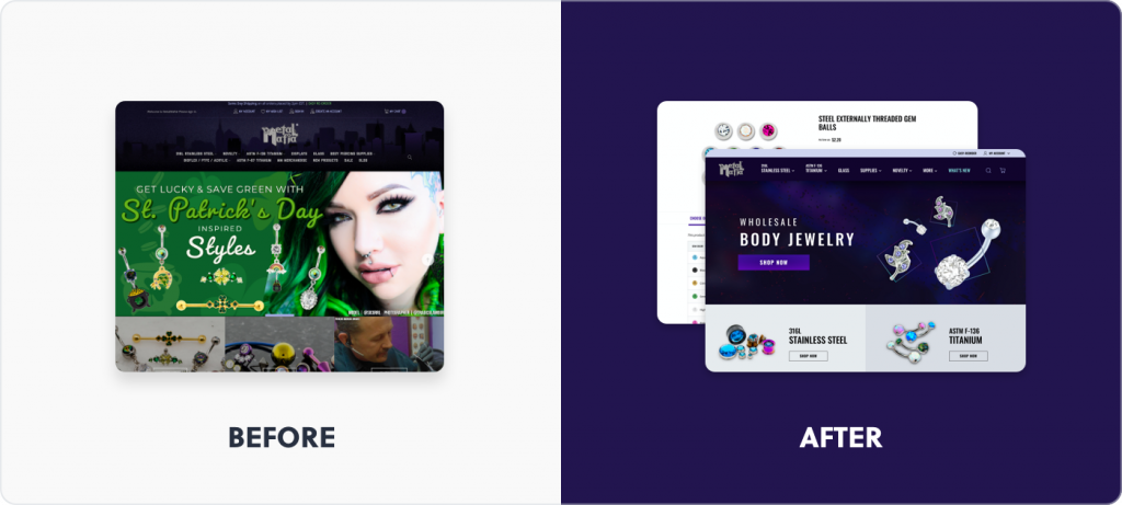Metal Mafia is a wholesale body jewelry supplier serving piercing and tattoo shops across the country. Their old site was clunky, hard to navigate, and didn’t reflect the edgy, fashion-forward nature of their products.